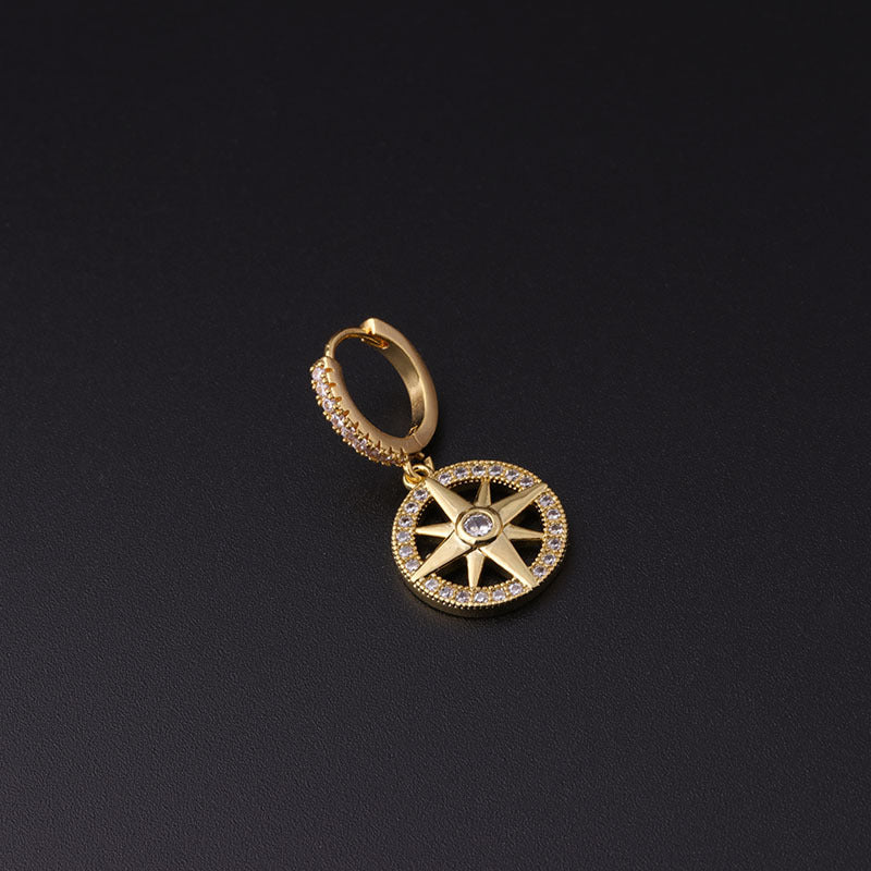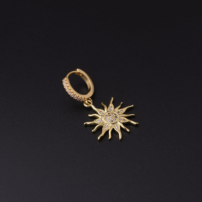 18K Gold Boho Dangle Hoop Earrings,Clip on Earrings,Celestial Earrings | HSPJ337