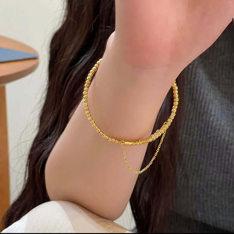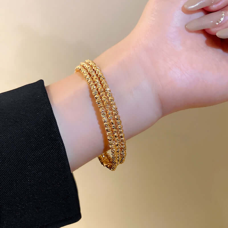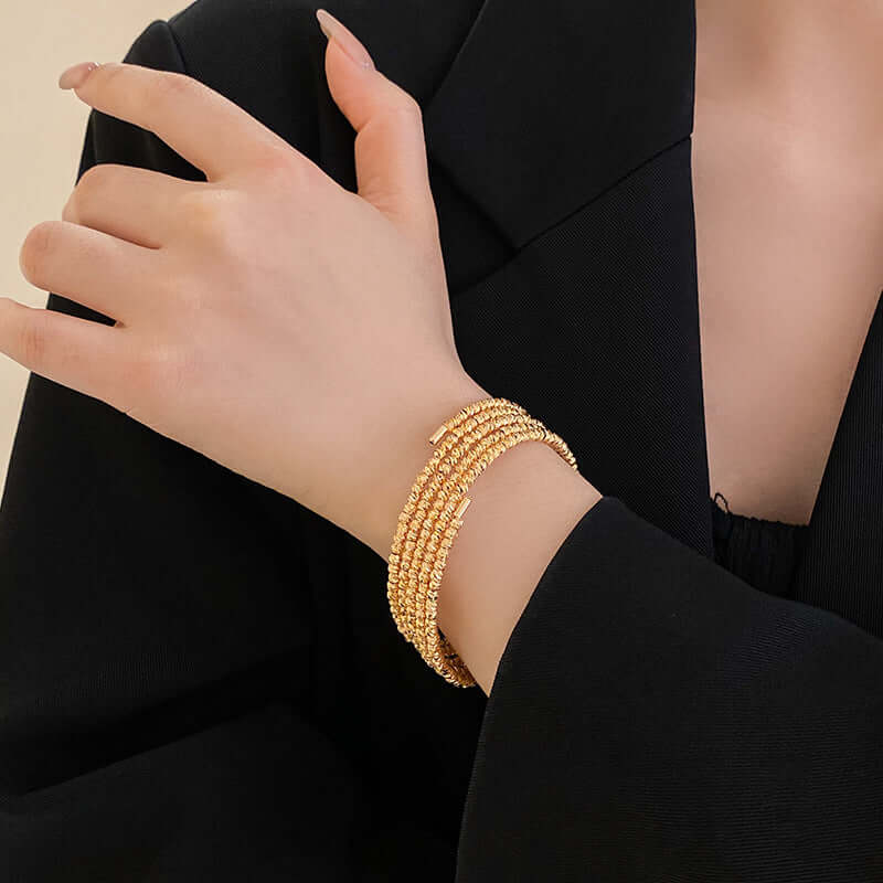 Bling Layer Gold Beads Strengthable Bangle Cuff Bracelet | R8270