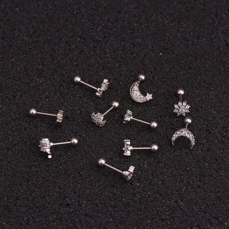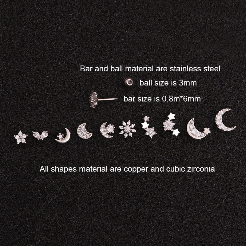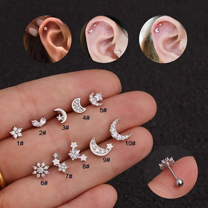 20G Cartilage Tiny Moon Star Tragus Stud | HSPJ1927