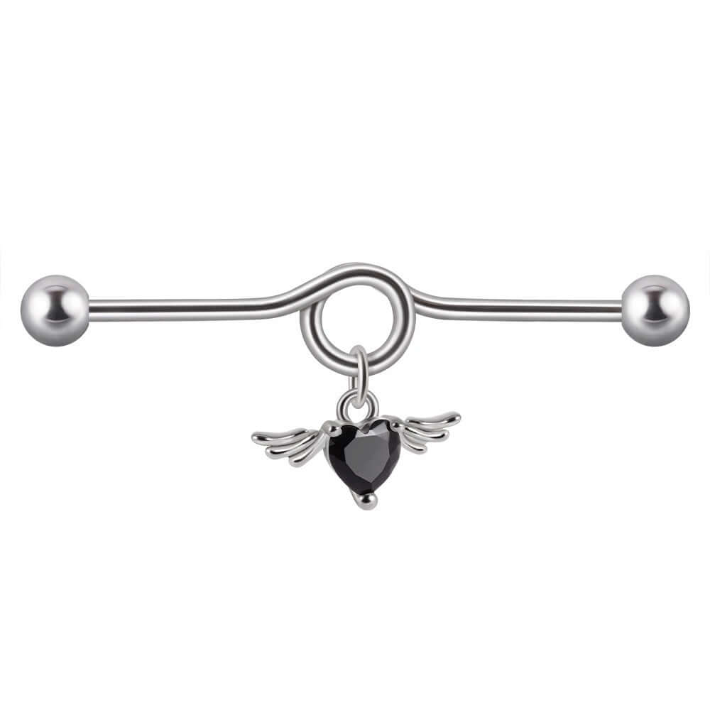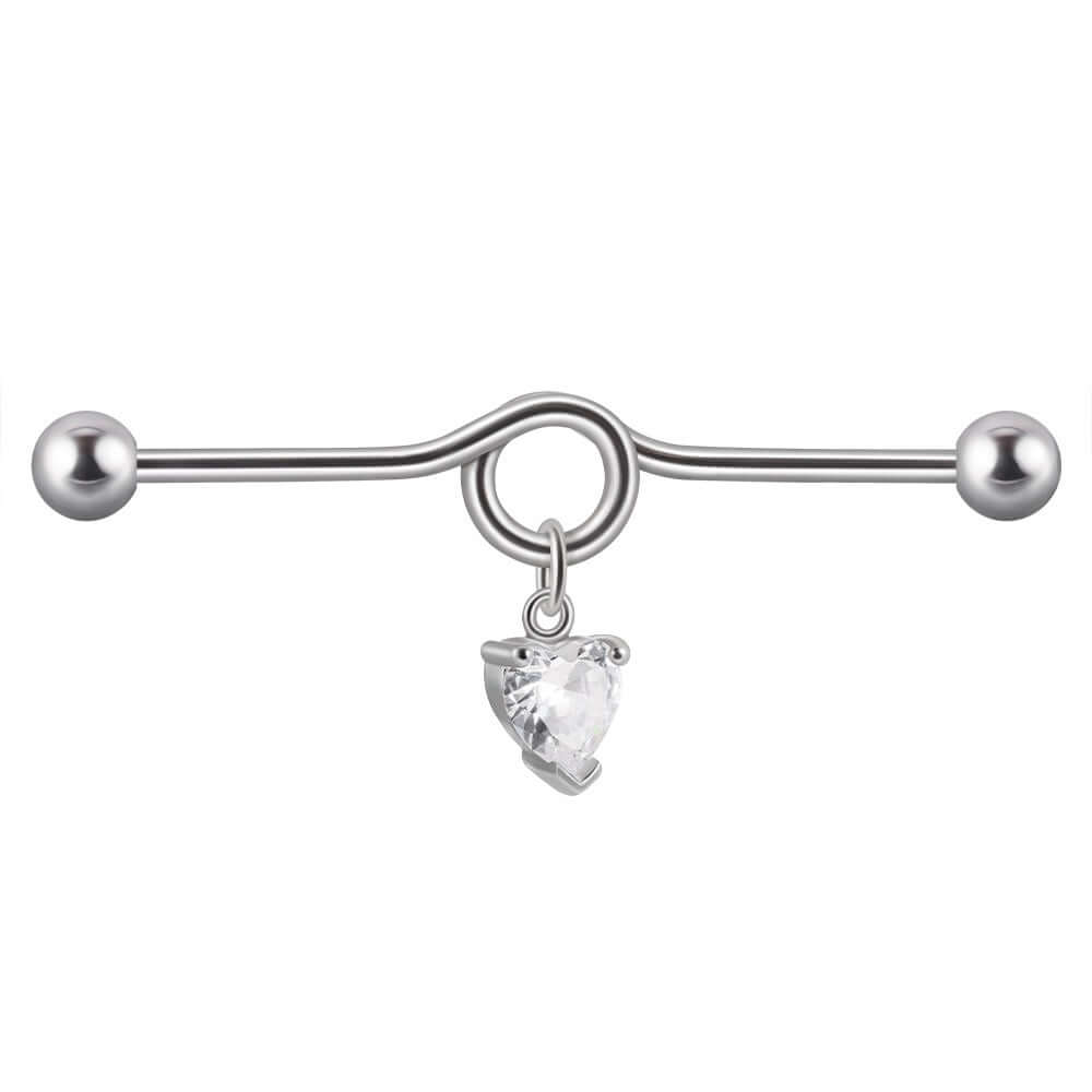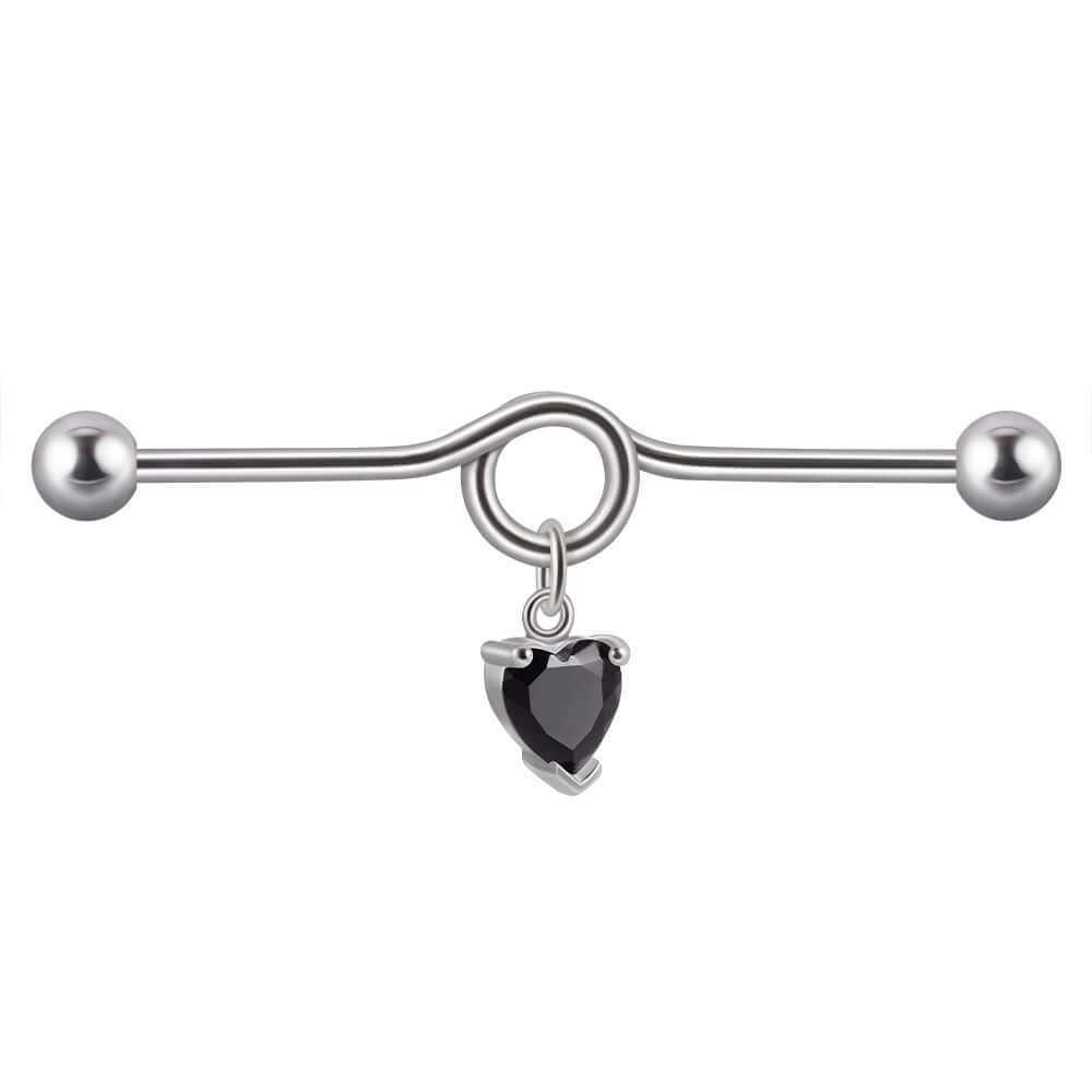 14G Heart Double Hole Industrial Bar | DL7071