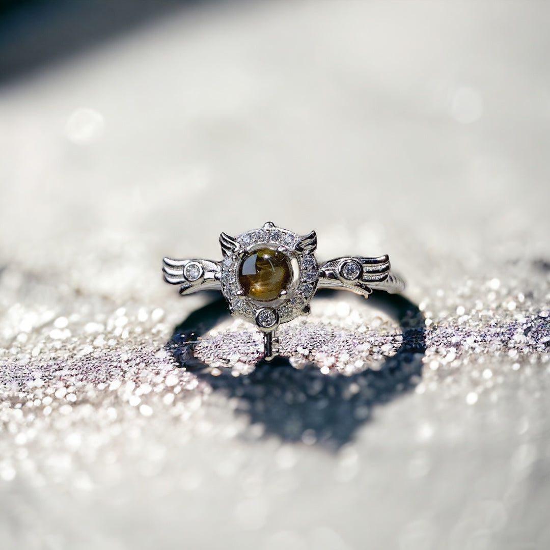 18K Gold Cute Angel Wings Black Star Sapphire Ring | NS2407